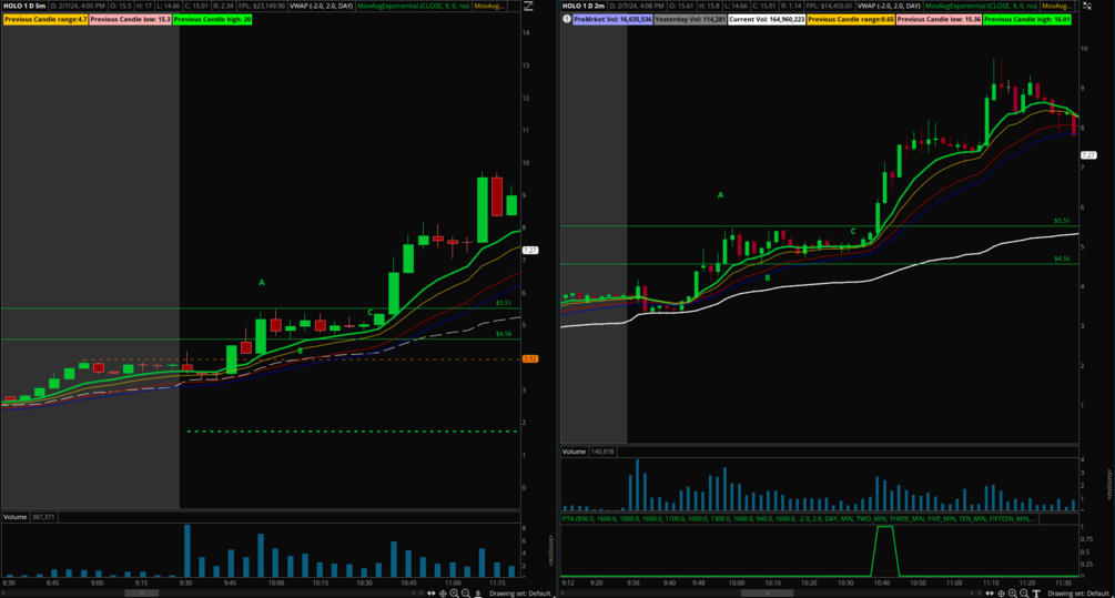 Often times you see traders using over 5 indicators to determine trading which maybe the Fib, RSI, Bollinger bands, TTM squeeze, etc. ANCRYONM says K.I.S.S. - Keep it simple stupid. No need to have 100s of lagging indicators on all your charts to confuse you to determine how to enter a trade. You want a nice clean chart. I only use two, which are the moving average (VWAP included) and MACD.